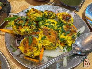 For our first lunch visit, we opted to do a tapas style tasting of almost the entire appetizer / small plate menu. It did NOT disappoint. There wasn’t a single dish that we didn’t enjoy immensely, but there were a few standouts worth shouting out. The gobi Manchurian and tandoori stuffed mushrooms were tied for absolute favorite. I was even on the fence about the mushrooms but they really blew me away. Among our other choices were the vegetable samosas, onion bhaji, and chili naan (very spicy, very worth it). Between the two of us this was more than enough food – we did go a little crazy – but we wound up finishing our plates anyway.